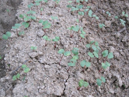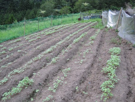 ←漆平野 芽吹いたものの、手で播いてその後鍬で覆土したが、甘かったかも。