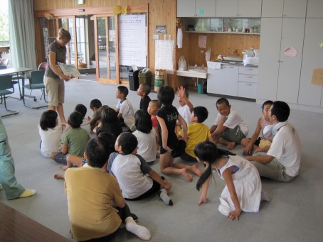 学童保育(小学生が夏休みに来るもの。これはちょうど英語の時間)