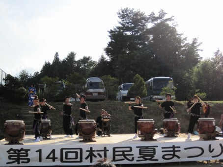第14回村民夏祭り(写真はオープニングで太鼓を演奏する直前のもの)